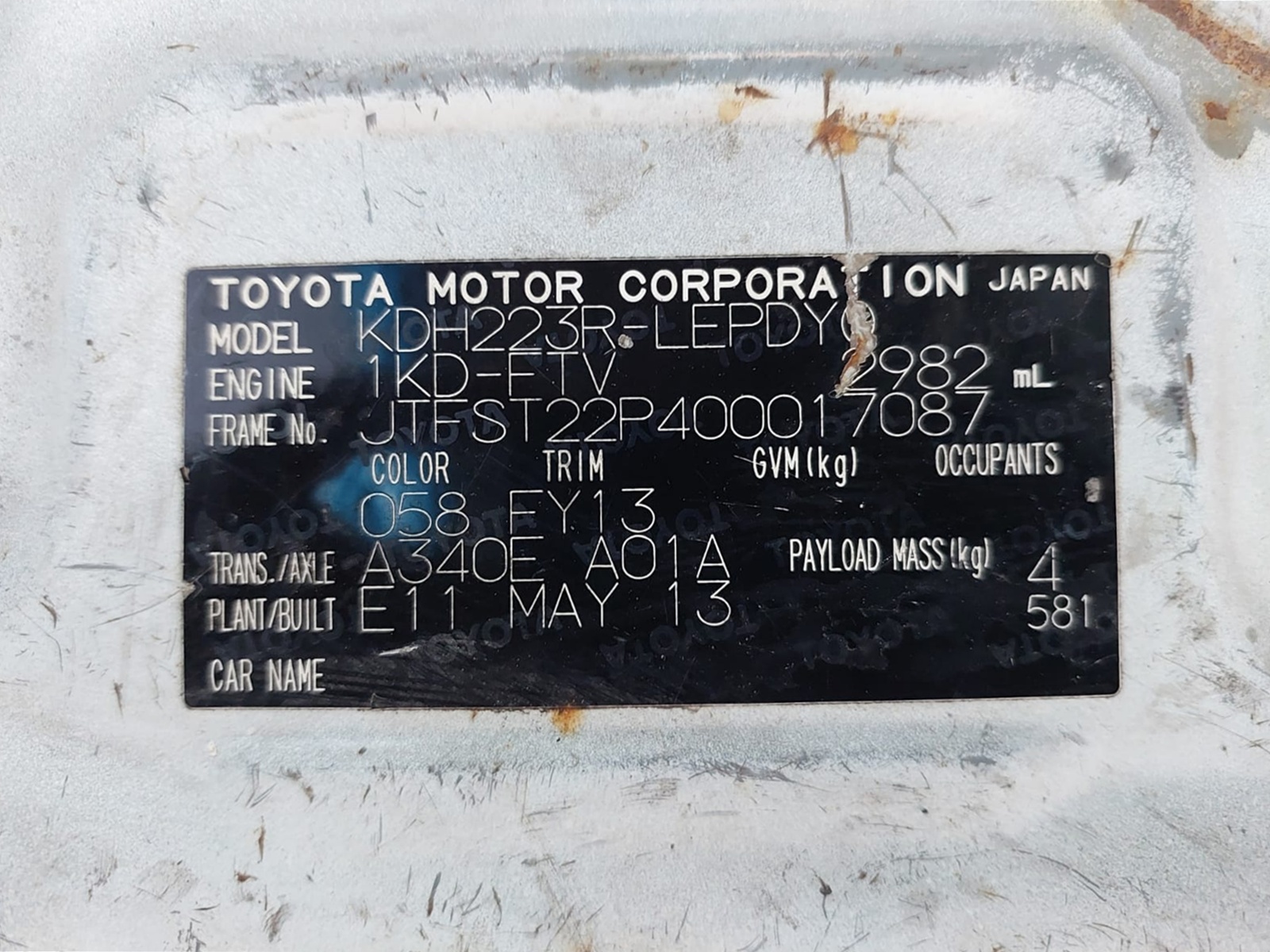 | Chassis # | JTFST22P400017087 | Mileage | 336000 (km) |