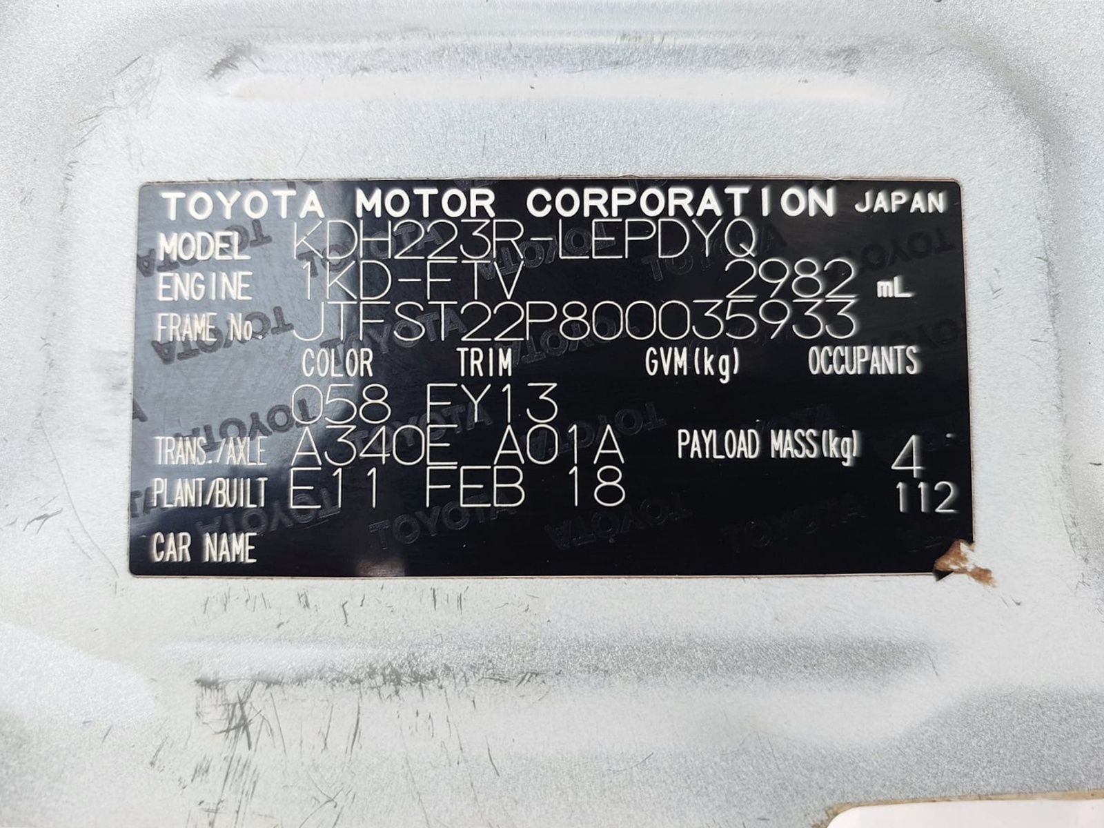 | Chassis # | JTFST22P800035933 | Mileage | 427500 (km) |